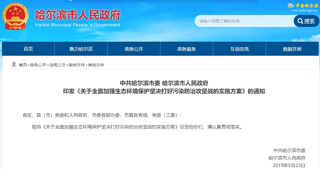 為深入貫徹黨的十九大和全國、全省生態環境保護大會精神,全面落實《中共中央、國務院關于全面加強生態環境保護堅決打好污染防治攻堅戰的意見》和《中共黑龍江省委、黑龍江省人民政府關于全面加強生態環境保護堅決打好污染防治攻堅戰的實施意見》,持續改善生態環境質量,建設美麗哈爾濱,結合我市實際,特制定本實施方案。