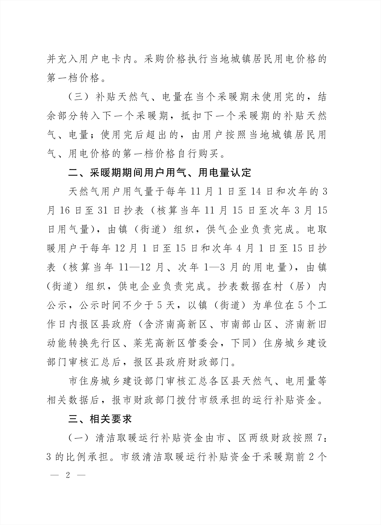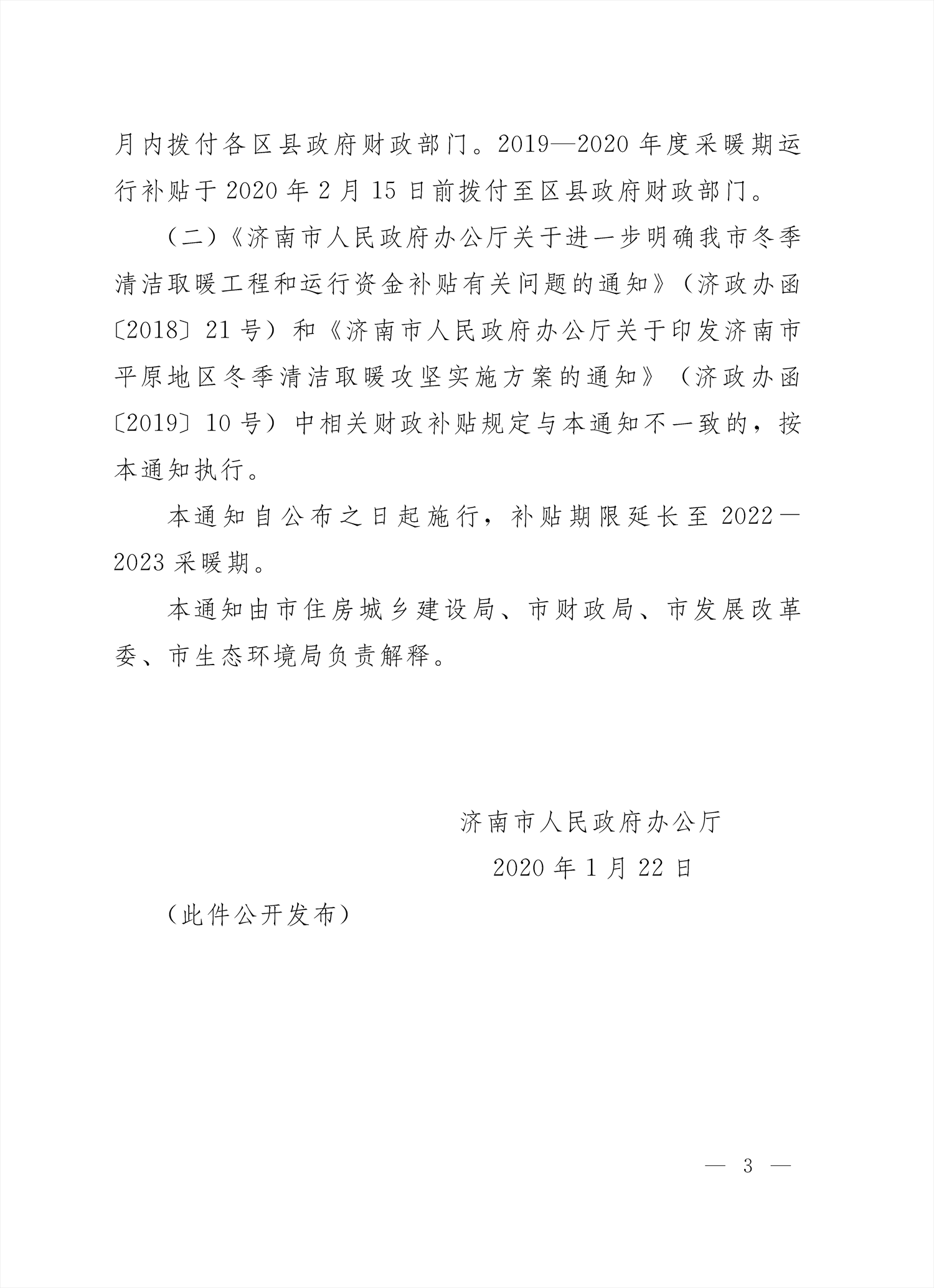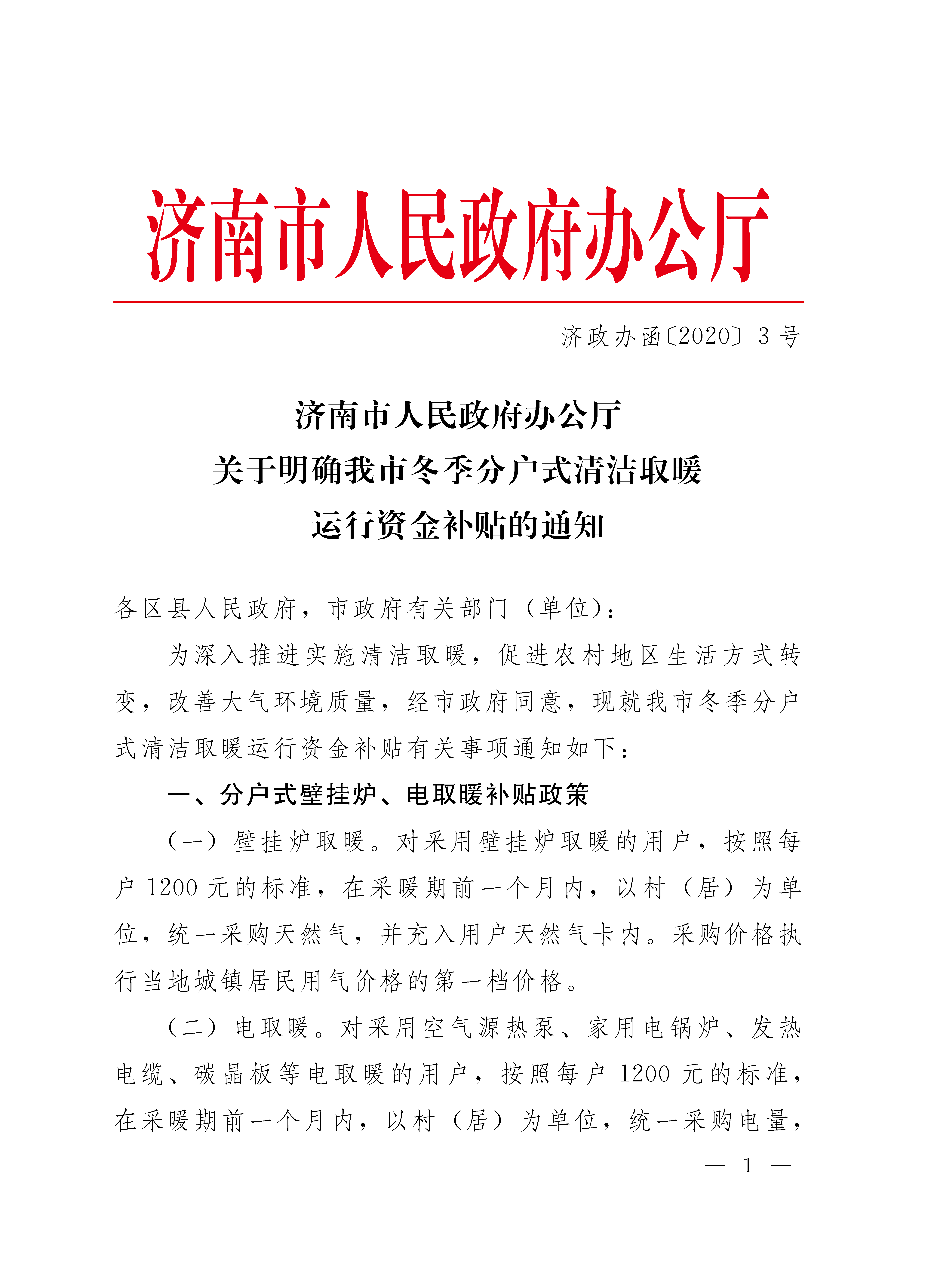 濟南市人民政府辦公廳關于明確我市冬季分戶式清潔取暖運行資金補貼的通知