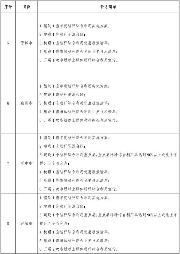 建設9個秸稈綜合利用重點縣,重點縣秸稈綜合利用率達90%以上或比上年提升5個百分點,形成一批可復制、可推廣的縣域秸稈綜合利用典型模式;進一步總結提煉適合我省應用的秸稈綜合利用技術,建立全省秸稈綜合利用主要技術清單;激發秸稈還田、收儲運、離田加工利用等環節市場主體活力,健全完善秸稈收儲運體系,全省秸稈綜合利用率較上年穩步提升;加強農作物秸稈資源臺賬建設,夯實秸稈綜合利用科學決策基礎。