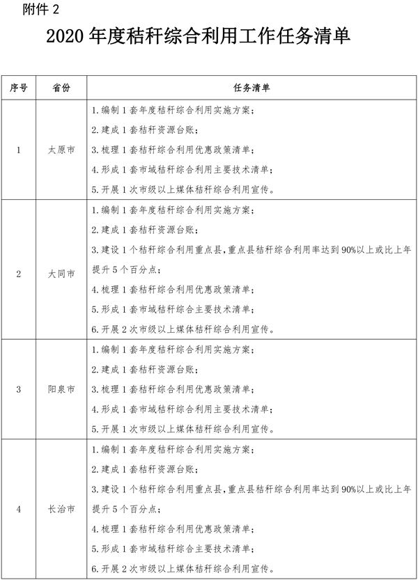 附件:1.山西省2020年農作物秸稈綜合利用實施方案
