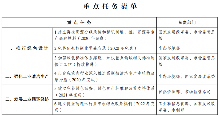 (三)推行綠色設計。健全推行綠色設計的政策機制。建立再生資源分級質控和標識制度,推廣資源再生產品和原料。完善優先控制化學品名錄,引導企業在生產過程中使用無毒無害、低毒低害和環境友好型原料。強化標準制定統籌規劃,加強綠色標準體系建設,擴大標準覆蓋范圍,加快重點領域相關標準制修訂工作,根據實際提高標準和設計規范。(國家發展改革委、工業和信息化部、生態環境部、市場監管總局等按職責分工負責)