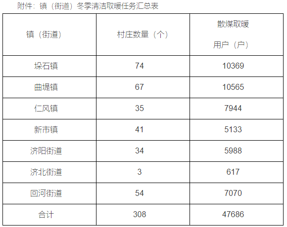 附件:鎮(街道)冬季清潔取暖任務匯總表