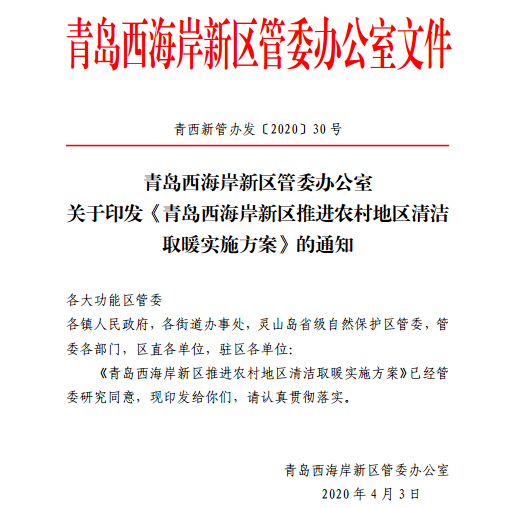 青島西海岸新區(qū)推進農(nóng)村地區(qū)清潔取暖實施方案