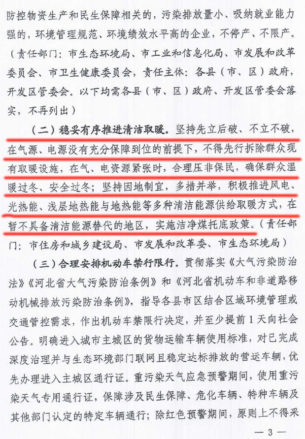 在差異化管控、分類施治方面,河北省確定了五項重點任務。其中之一,穩妥有序推進清潔取暖和燃煤鍋爐淘汰。堅持先立后破、不立不破原則,推進清潔取暖,保障群眾溫暖過冬;堅持因地制宜、多措并舉原則,推進風電、光熱能等多種清潔能源供給取暖方式;堅持“一爐一策”,推進35蒸噸/小時及以下燃煤鍋爐淘汰,不搞“一刀切”式淘汰。