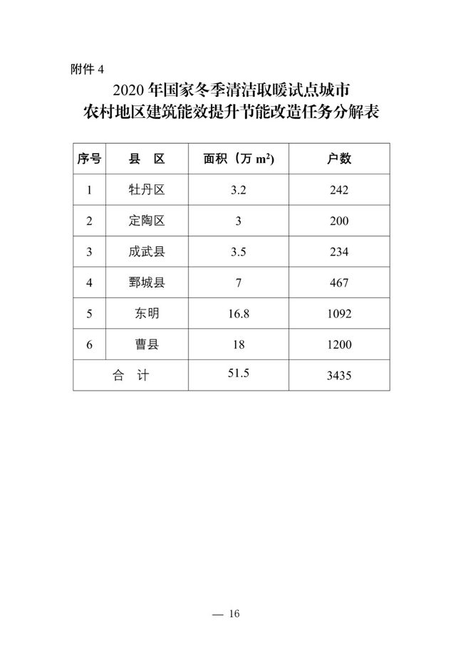 《實施方案》要求,在農(nóng)村清潔取暖方面,將用戶側建筑能效提升作為清潔取暖的一項重要內容,做好任務細化分配,技術標準建立,財政投入帶動,驗收體系建立等工作,全面推動建筑節(jié)能改造工作。城區(qū)、縣城及城鄉(xiāng)結合部重點突破、全面帶動,提升建筑品質和能效水平,實現(xiàn)節(jié)能減排,著力改善民生。農(nóng)村地區(qū)穩(wěn)步改善農(nóng)村居住環(huán)境,科學合理制定農(nóng)宅能效提升建設模式,鼓勵和引導既有農(nóng)房節(jié)能改造,完善支撐體系。東明縣、甄城縣全部灘區(qū)遷建共計3.79萬戶,納入國家冬季清潔取暖試點城市建設范圍,市級財政按照3300元/戶的標準補貼至縣區(qū),不足部分由縣區(qū)和用戶承擔。要求每戶建設不少于2個取暖房間。建設標準參照往年煤改電、煤改氣、地熱、空氣源熱泵等模式執(zhí)行。運行補貼參照2019年菏澤市清潔取暖實施方案執(zhí)行。
