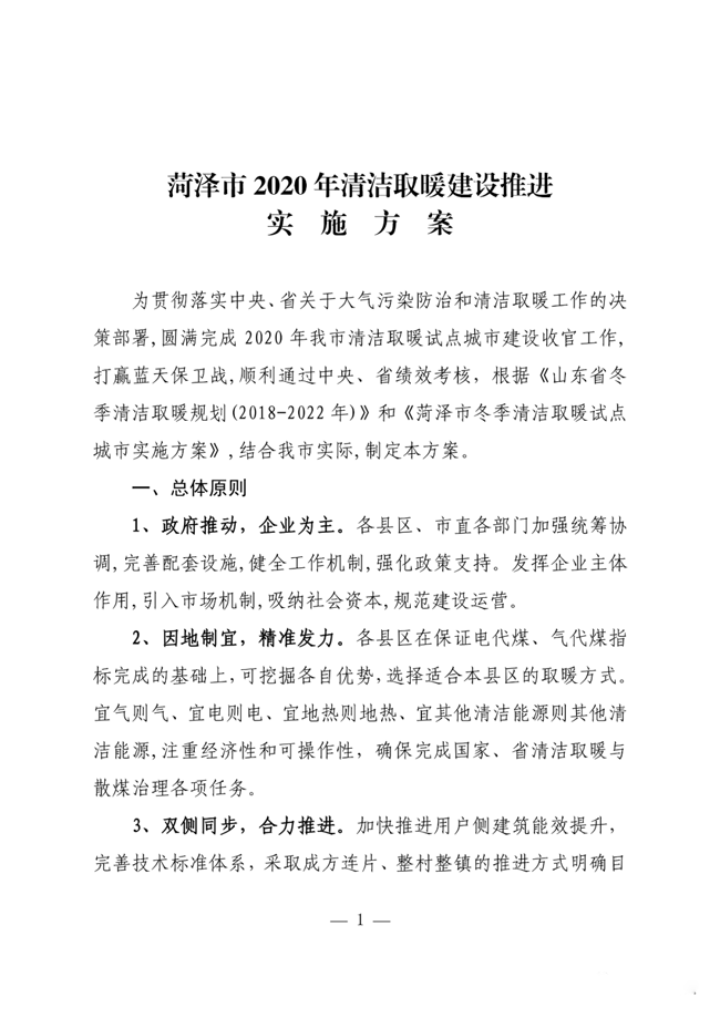 近日,山東菏澤市人民政府印發(fā)《菏澤市2020年清潔取暖建設推進實施方案》,方案要求,挖掘各自優(yōu)勢,選擇適合本縣區(qū)的取暖方式,宜氣則氣,宜電則電,宜地熱則地熱,宜其他清潔能源則其他清潔能源,注重經(jīng)濟性和可操作性,確保完成國家、省清潔取暖與散煤治理任務。目標2020年農(nóng)村地區(qū)新增清潔取暖20.04萬戶,實施農(nóng)村建筑能效提升節(jié)能改造51.5萬㎡;城區(qū)及城鄉(xiāng)結合部建筑能效提升節(jié)能改造752.5萬㎡。