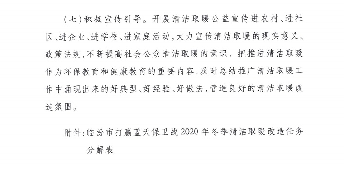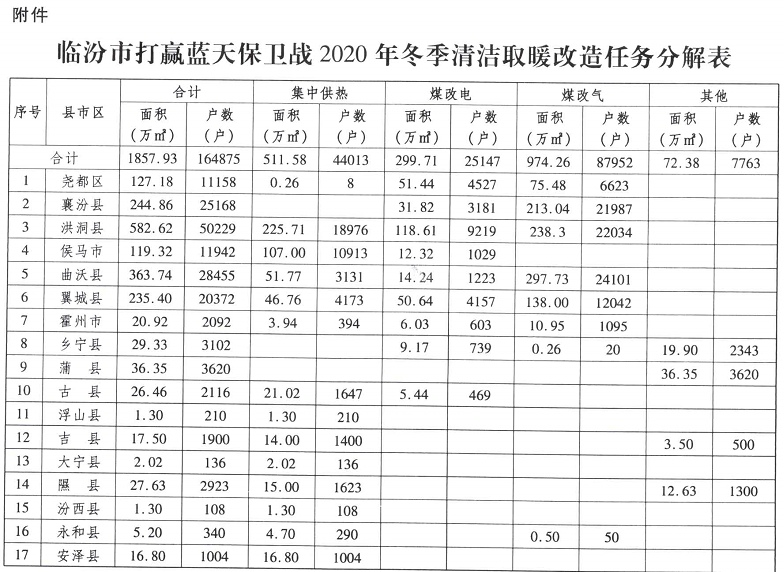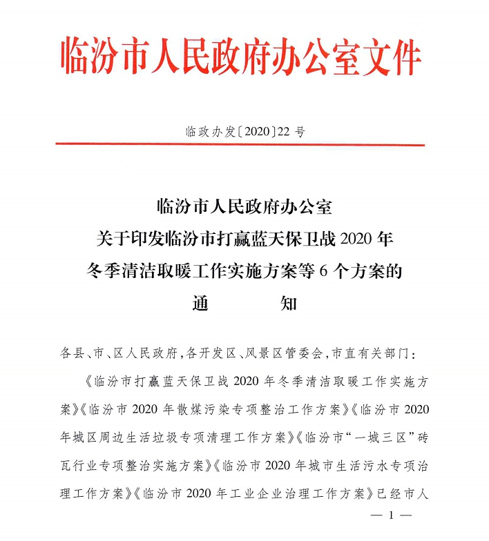關于印發臨汾市打贏藍天保衛戰2020年冬季清潔取暖