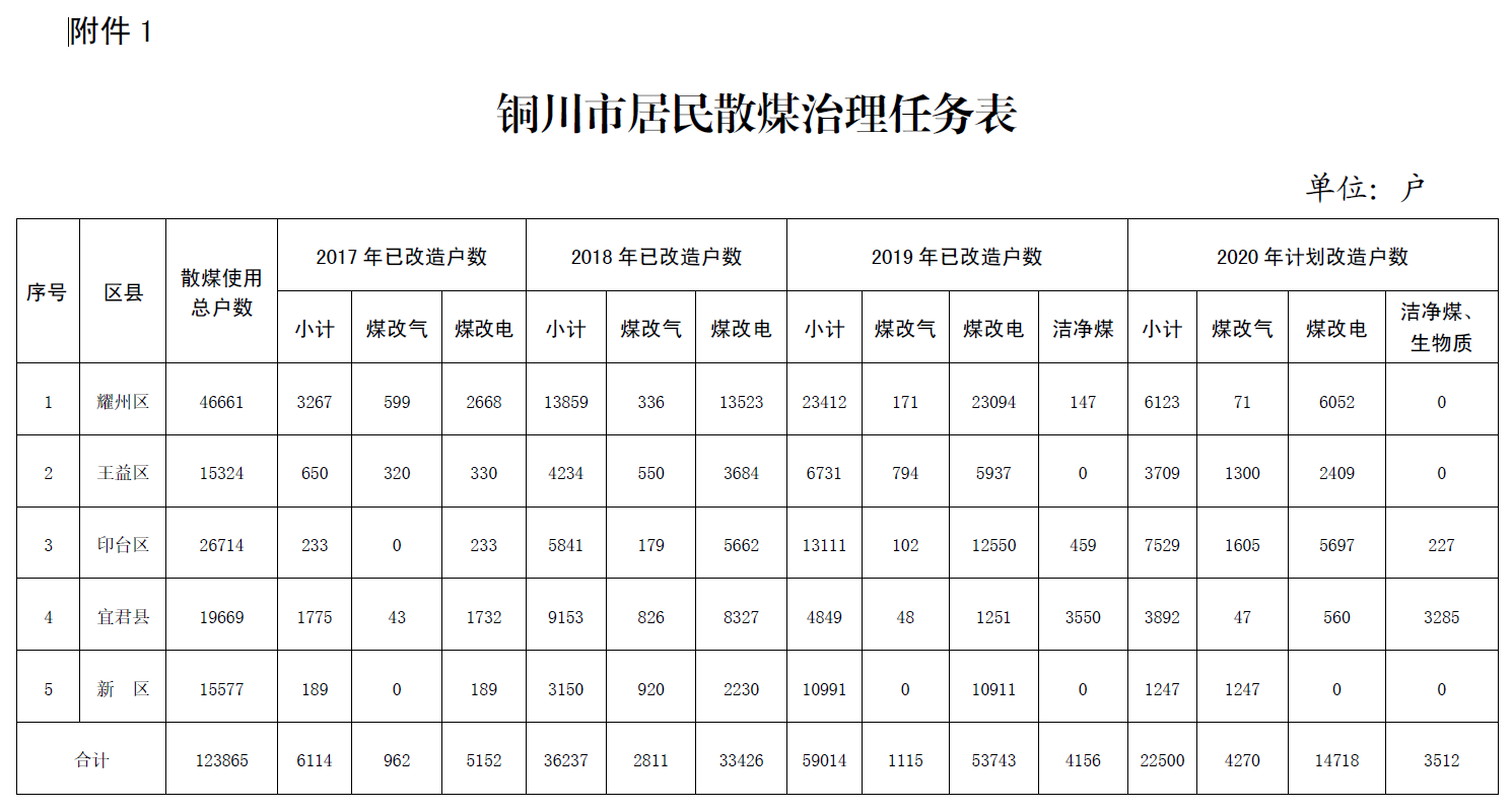 關于印發《銅川市散煤治理工作實施方案(2020-2021年)》的通知