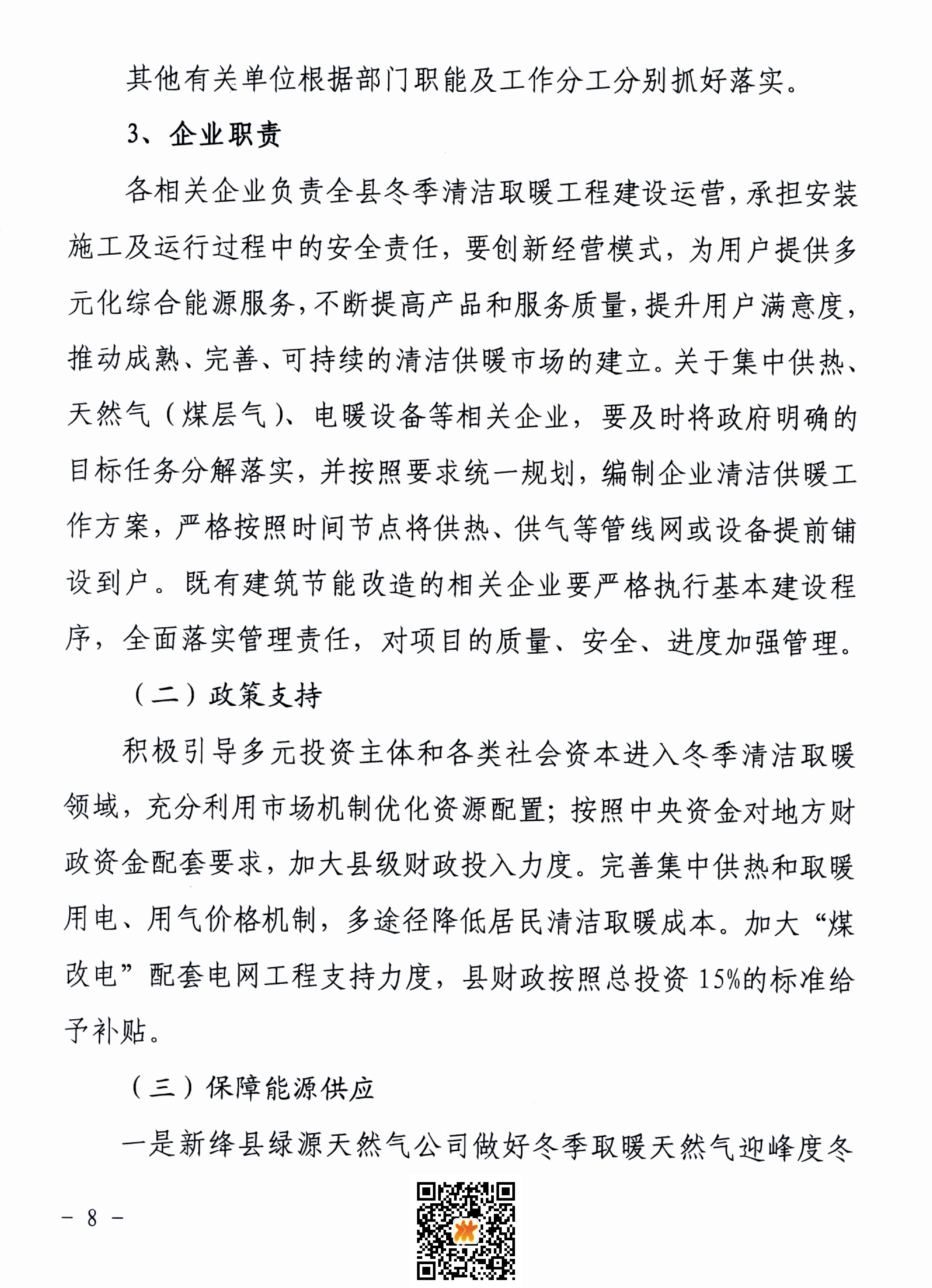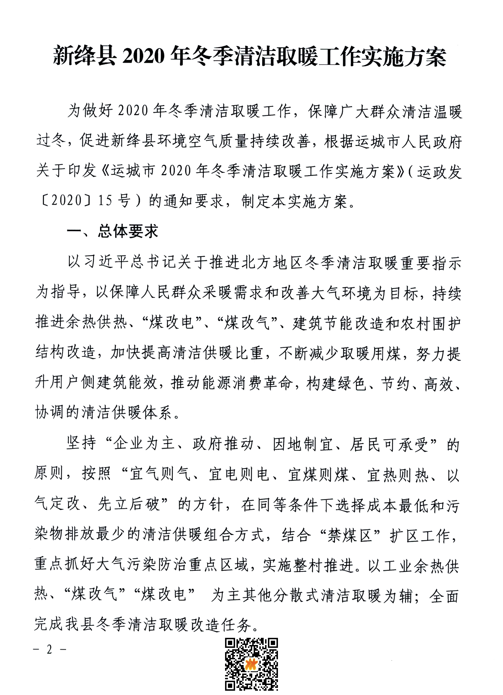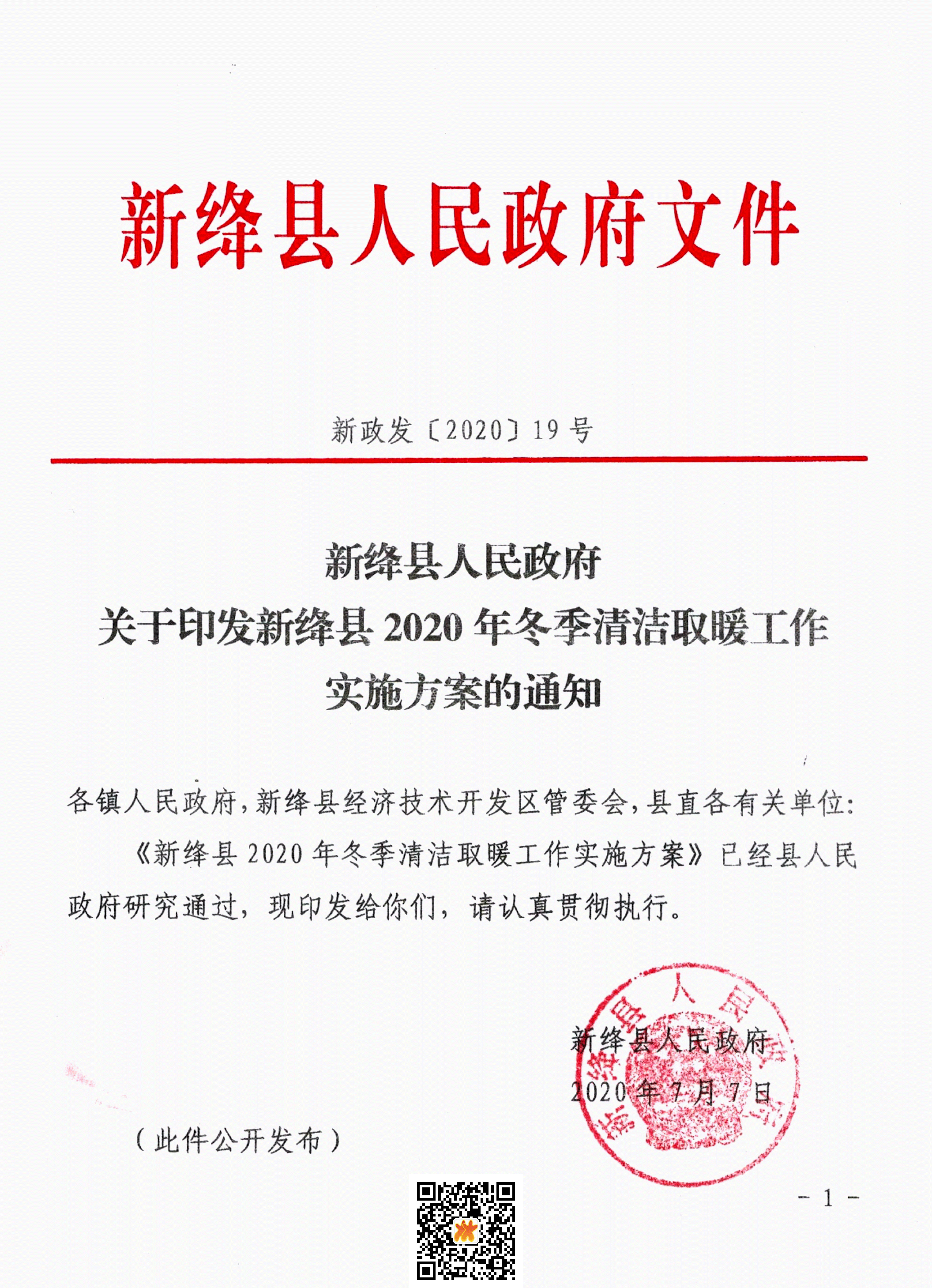 近日,山西省運城市新絳縣人民政府印發《新絳縣2020年冬季清潔取暖工作實施方案》。方案明確,2020年10月31日前,完成清潔取暖改造戶數11103戶。