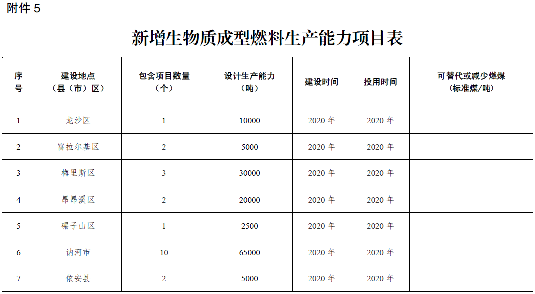 2022年,在富裕縣、龍江縣、碾子山區建設投用3座生物質熱電聯產電站,替代或減少燃煤36.96萬噸/年。