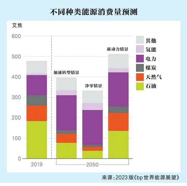 全球能源需求的變化主要有4個趨勢:石油和天然氣的地位逐漸下降、可再生能源消費快速增長、電氣化的普及,以及低碳氫能的大規模應用。