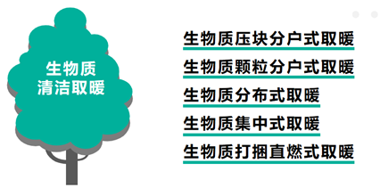 生物質清潔取暖應用的發展路徑主要包括生物質壓塊分戶式取暖、生物質顆粒分戶式取暖、生物質分布式取暖、生物質集中式取暖、生物質打捆直燃式取暖。