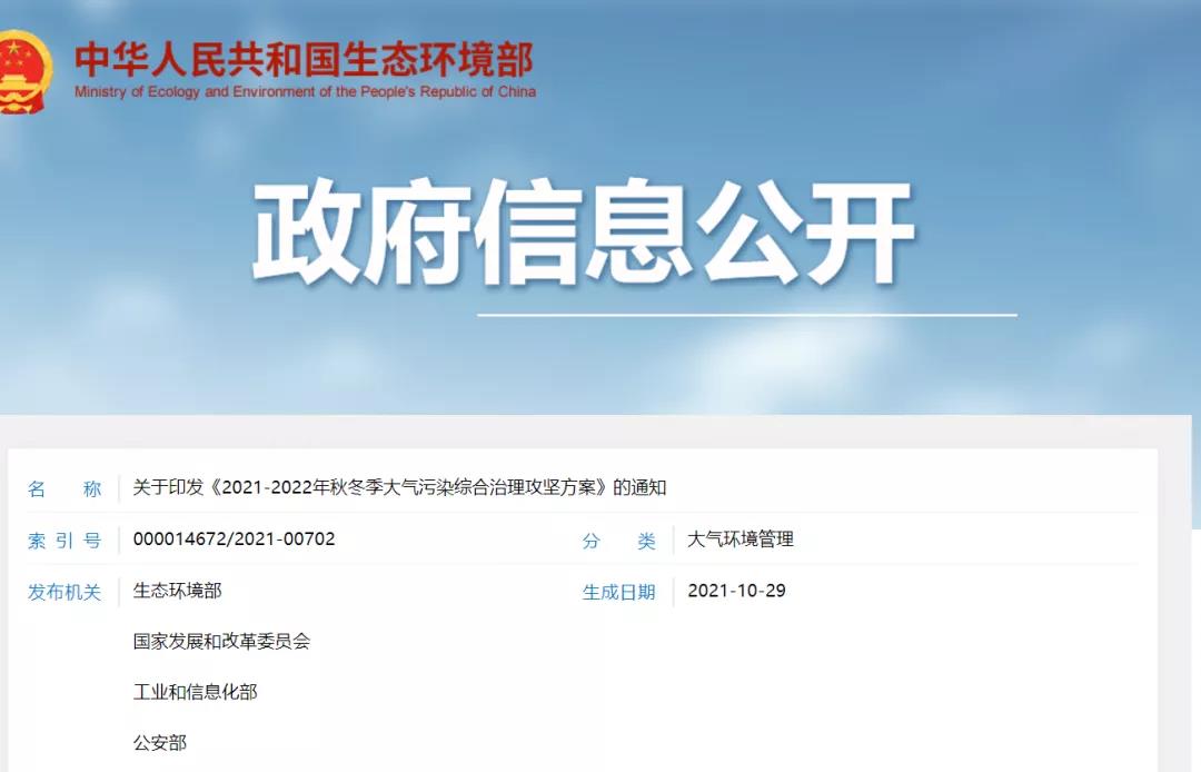 近日,生態(tài)環(huán)境部印發(fā)了《2021-2022年秋冬季大氣污染綜合治理攻堅方案》。