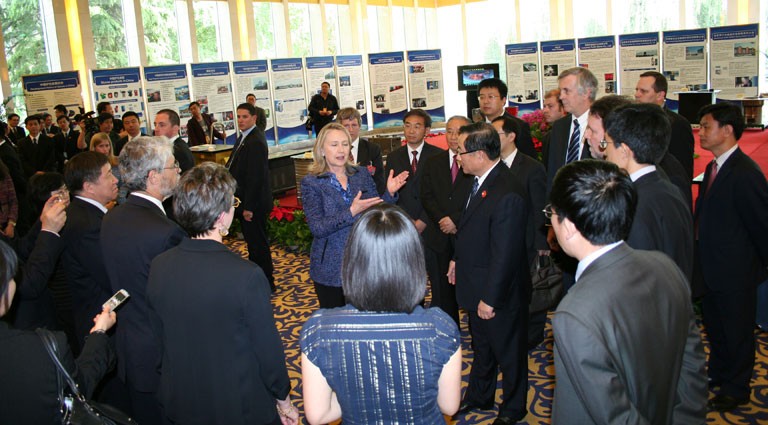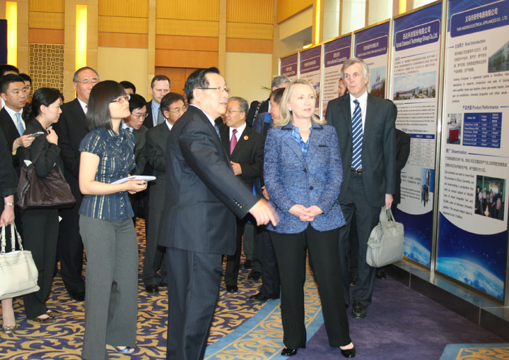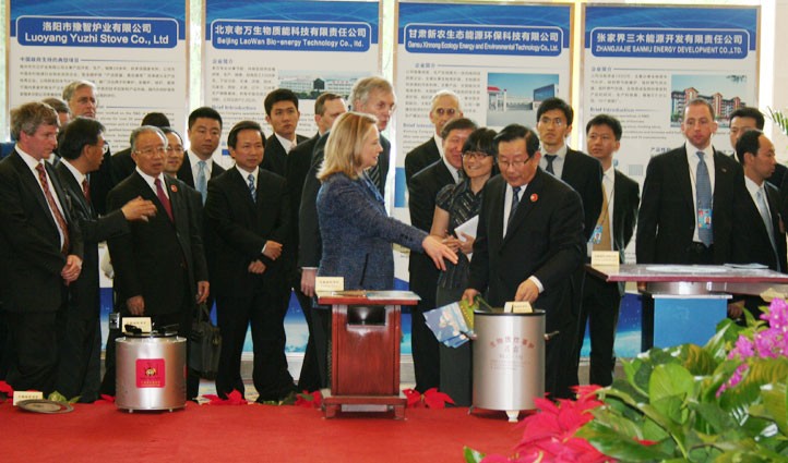 2012年5月3日,在北京出席“第四輪中美戰略與經濟對話”的美國國務卿希拉里在國務委員戴秉國的陪同下參觀了在釣魚臺國賓館應美方要求舉辦的小型“中國清潔爐具展示會”,希拉里饒有興趣地觀看了由中國農村能源行業協會組織抽調的30余種不同類型的高效低排放爐具和展板。張桃林副部長和楊雄年副司長陪同參觀。