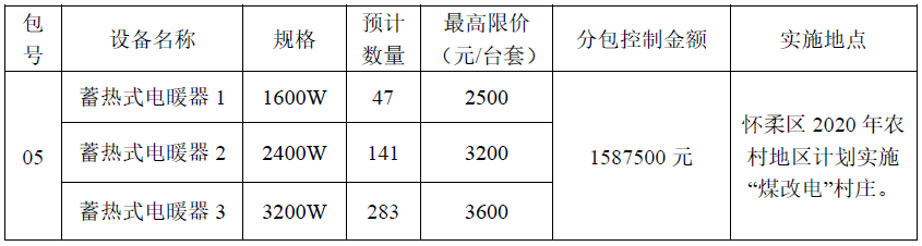 項目名稱:懷柔區2020年農村地區“減煤換煤”工程“煤改電”設備供貨及安裝供應商采購項目-蓄熱式電暖器