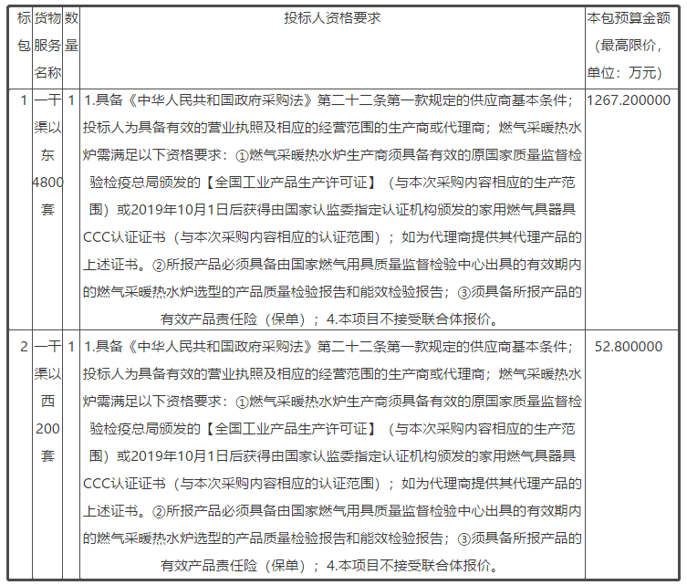 二、采購項目名稱:聊城經濟技術開發區廣平鎮2020年冬季清潔取暖所需燃氣采暖熱水爐、灶具采購項目