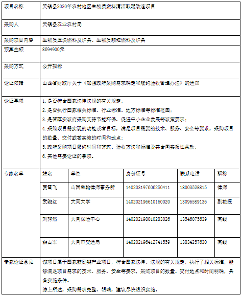 天鎮縣2020年農村地區生物質燃料清潔取暖改造項目需求評審公告