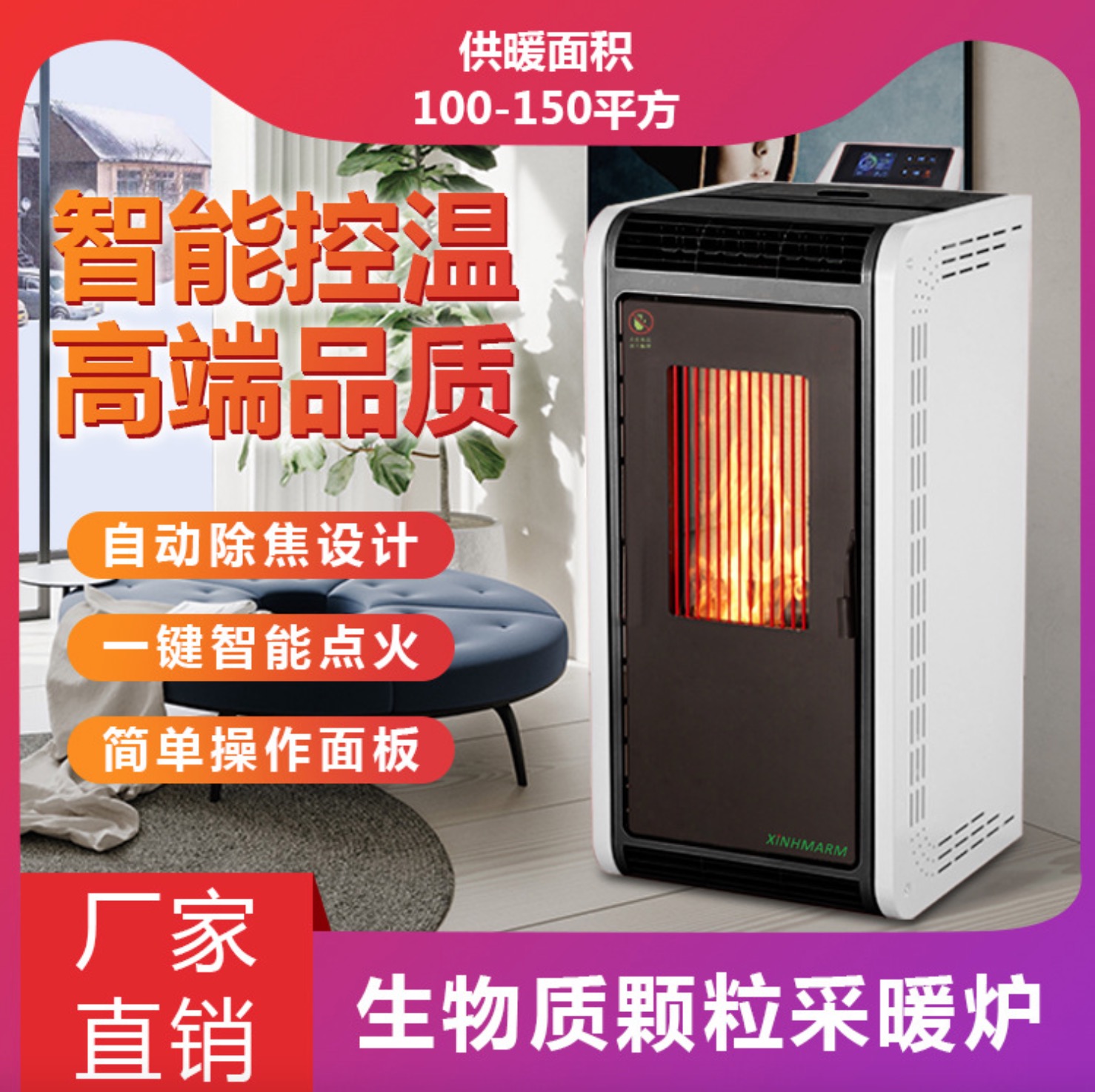 產(chǎn)品簡(jiǎn)介:生物質(zhì)顆粒取暖爐 自動(dòng)除焦取暖爐 全自動(dòng)顆粒壁爐 生物質(zhì)熱風(fēng)爐