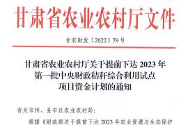 爐具網訊:近日,甘肅省農業農村廳提前下達2023年第一批中央財政秸稈綜合利用試點項目資金1724萬元。