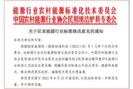由能源行業農村能源標準化技術委員會歸口,中國農村能源行業協會民用清潔爐具專業委員會組織編寫的《民用清潔暖風壁爐》能源行業標準已完成征求意見稿。修改意見請于202...