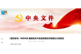 新華社受權(quán)發(fā)布《中共中央國務(wù)院關(guān)于促進民營經(jīng)濟發(fā)展壯大的意見》。意見指出,民營經(jīng)濟是推進中國式現(xiàn)代化的生力軍,是高質(zhì)量發(fā)展的重要基礎(chǔ),是推動我國全面建成社會主...