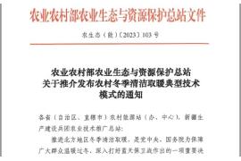 農業農村部農業生態與資源保護總站組織遴選了農村冬季清潔取暖10項典型技術模式,現予推介發布。
