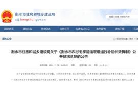 近日,河北省衡水市住房和城鄉建設局發布關于《衡水市農村冬季清潔取暖運行補助長效機制》公開征求意見的公告指出,繼續按潔凈煤100元/噸、爐具500元/臺為基準補助。