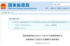 國家能源局綜合司關于下達2021年能源領域行業標準制修訂計劃及外文版翻譯計劃的通知。